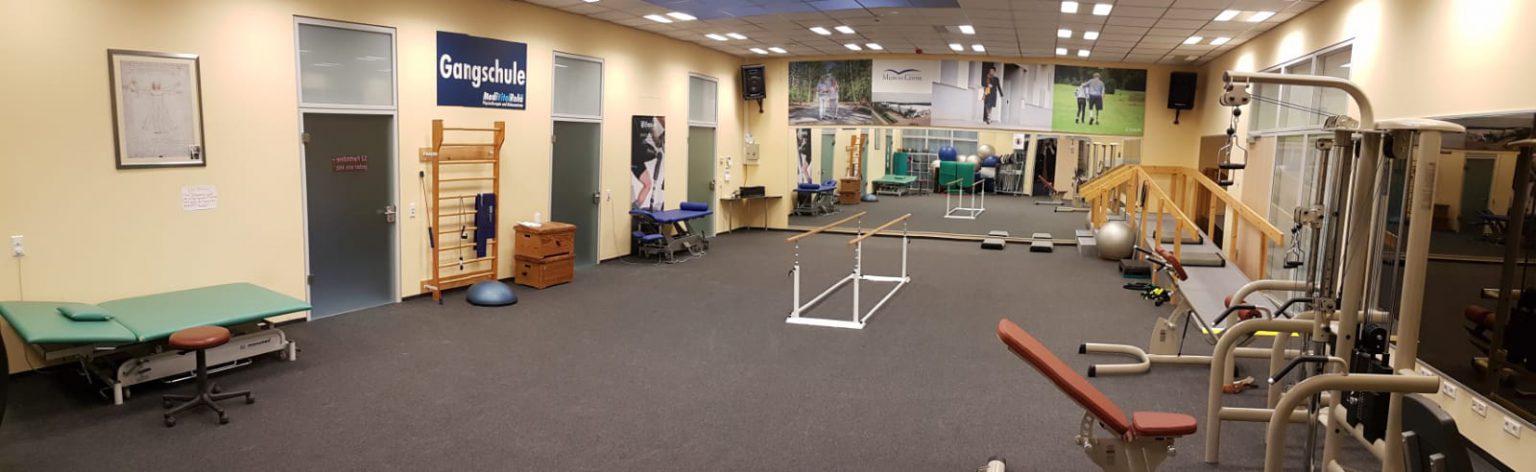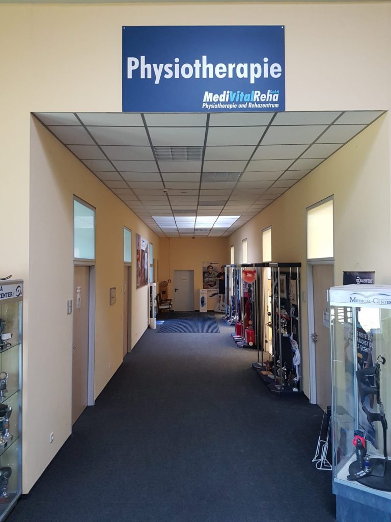 Der Zugang zu den Einzelbehandlungsräumen der Physiotherapie. Weiter hinten liegt der Bereich unserer Prothesenwerkstatt.